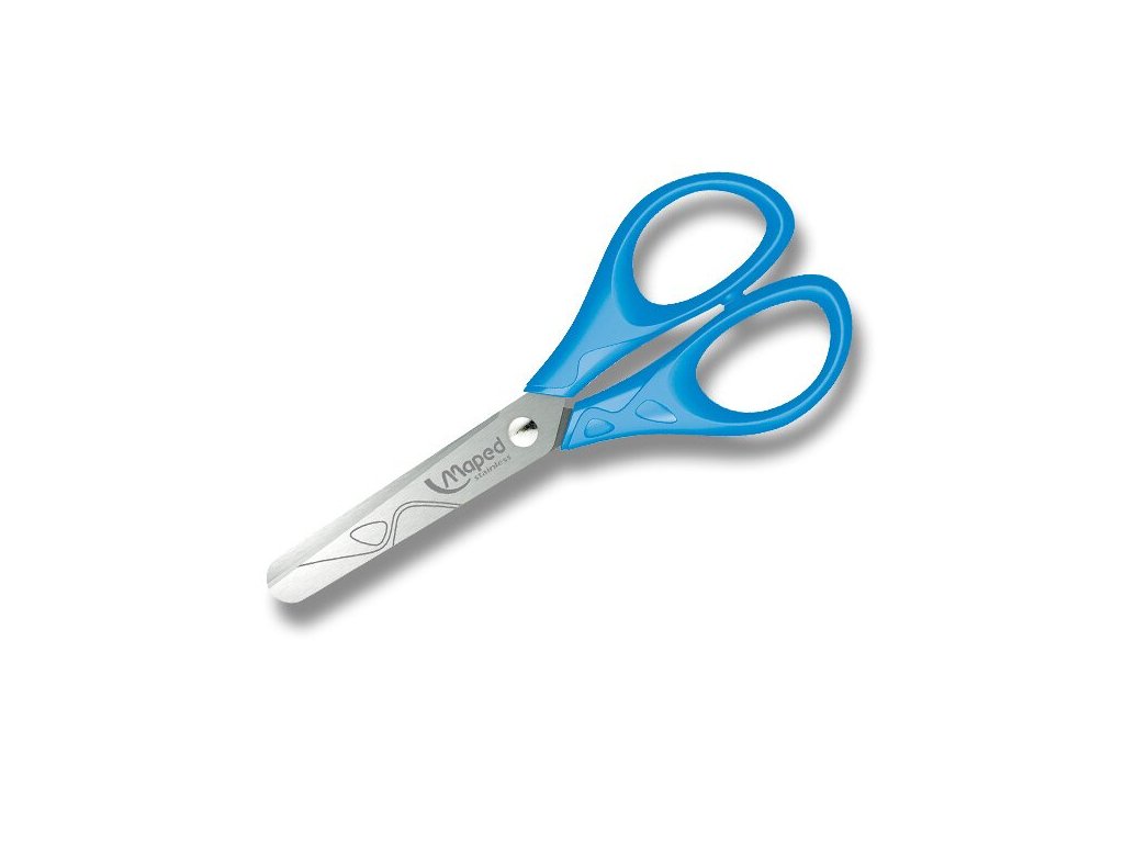 Školní nůžky velikosti 13 cm. Čepele z broušené nerezové oceli, zaoblené špičky. V provedení pro praváky. Mix barev.