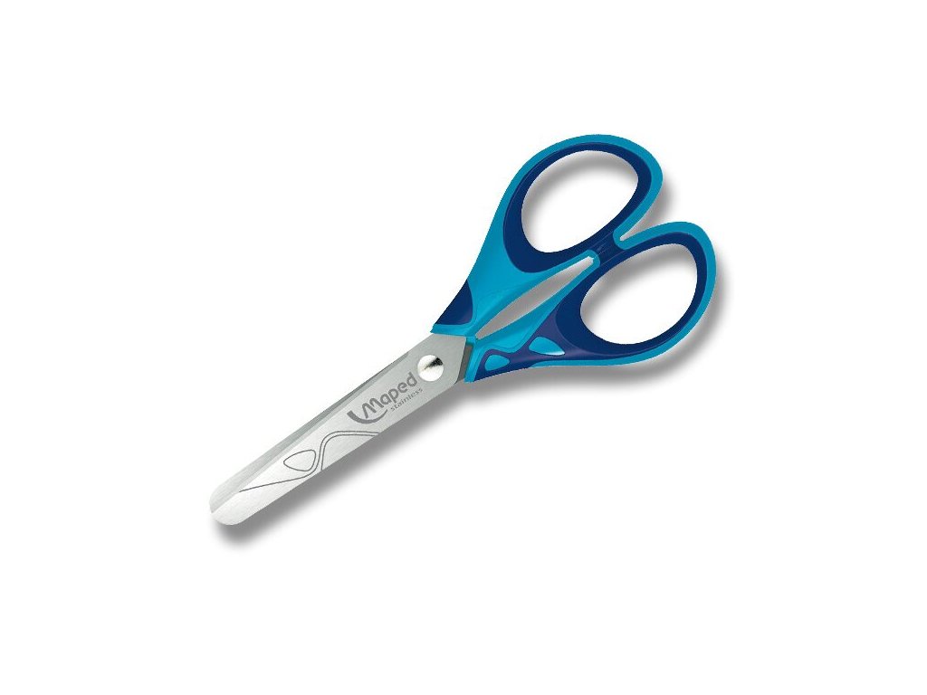 Ergonomické školní nůžky s měkkou rukojetí. Čepele z broušené nerezové oceli, zaoblené špičky. Mix barev.