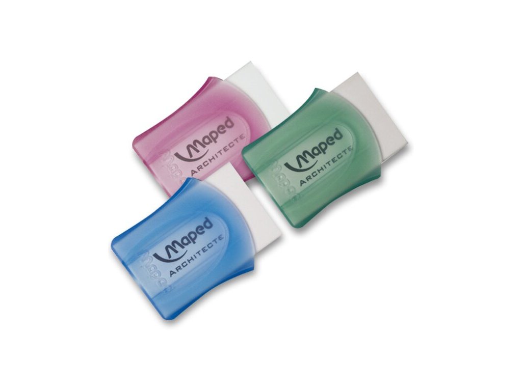Pryž Maped Architecte s průsvitným ergonomickým pouzdrem. Neobsahuje PVC. Mix barev pouzdra. Rozměry: 149 x 30 x 11 mm