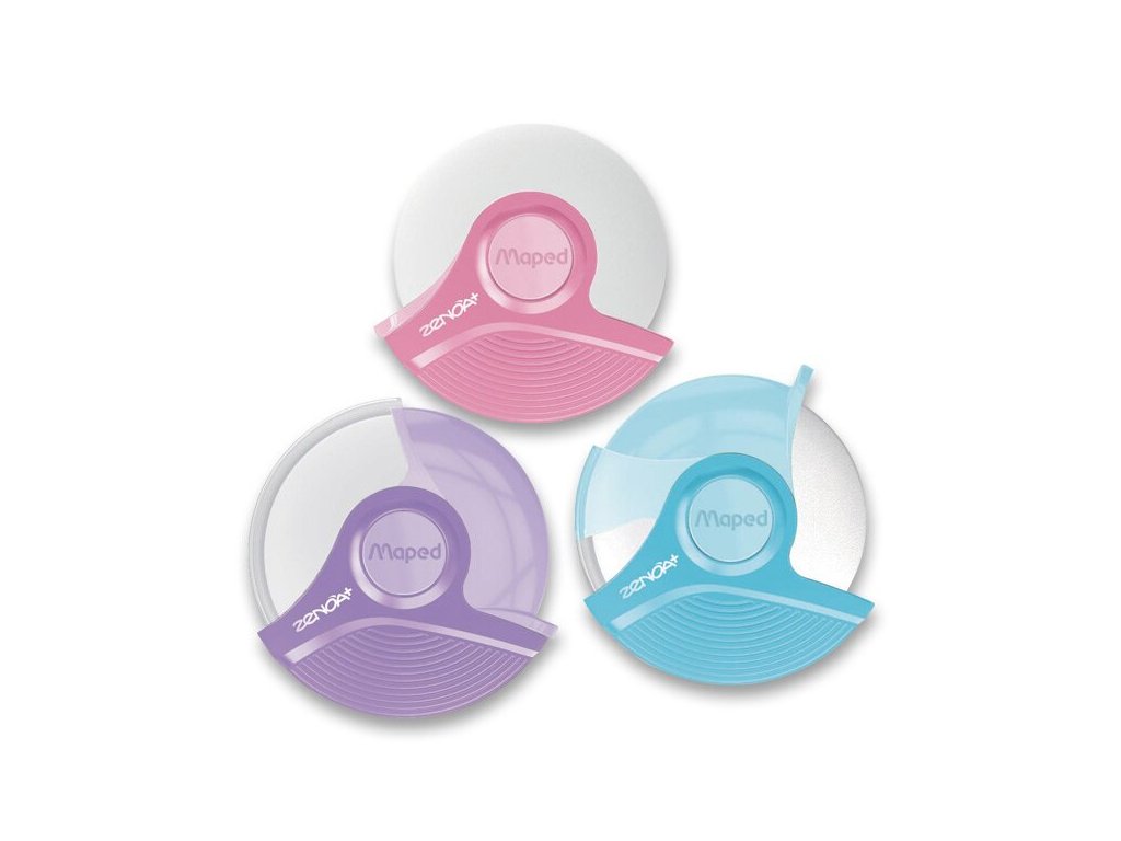 Kulatá pryž pro přesné gumování. Plně chráněná ochranným otočným pouzdrem. Moderní design. Neobsahuje PVC. Mix barev. Průměr pryže v pouzdře: 5 cm