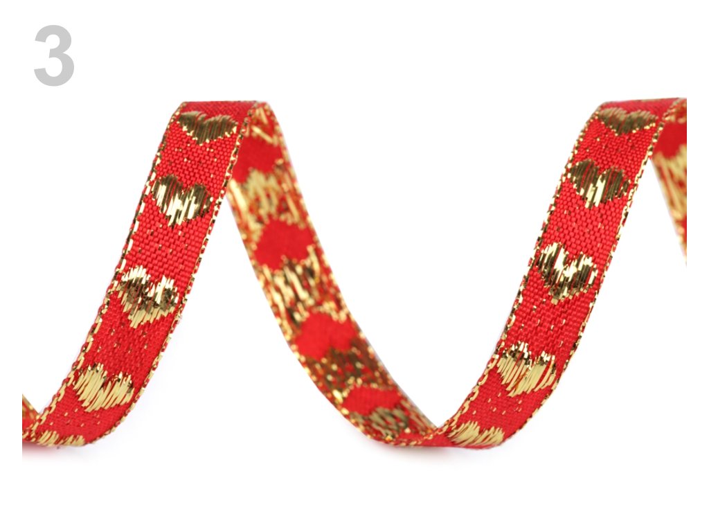 Stuha srdce s lurexem 10 mm - červená,zlatá (10m)