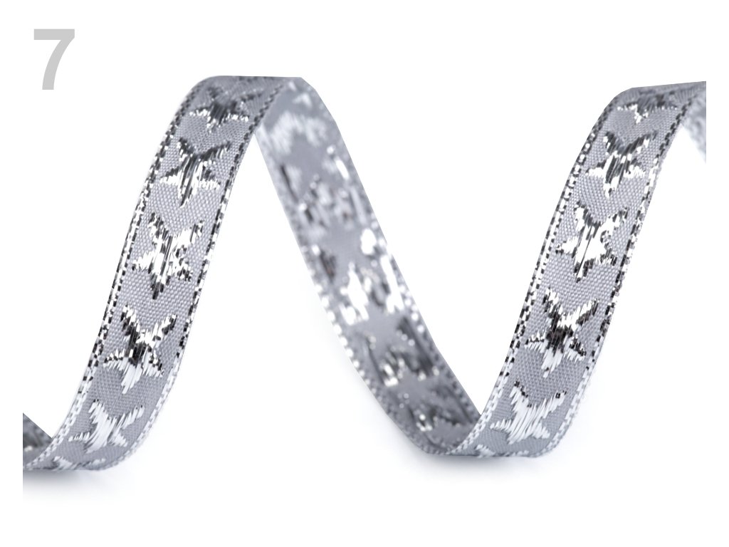 Stuha hvězda s lurexem 10 mm - stříbrná (19,4m)