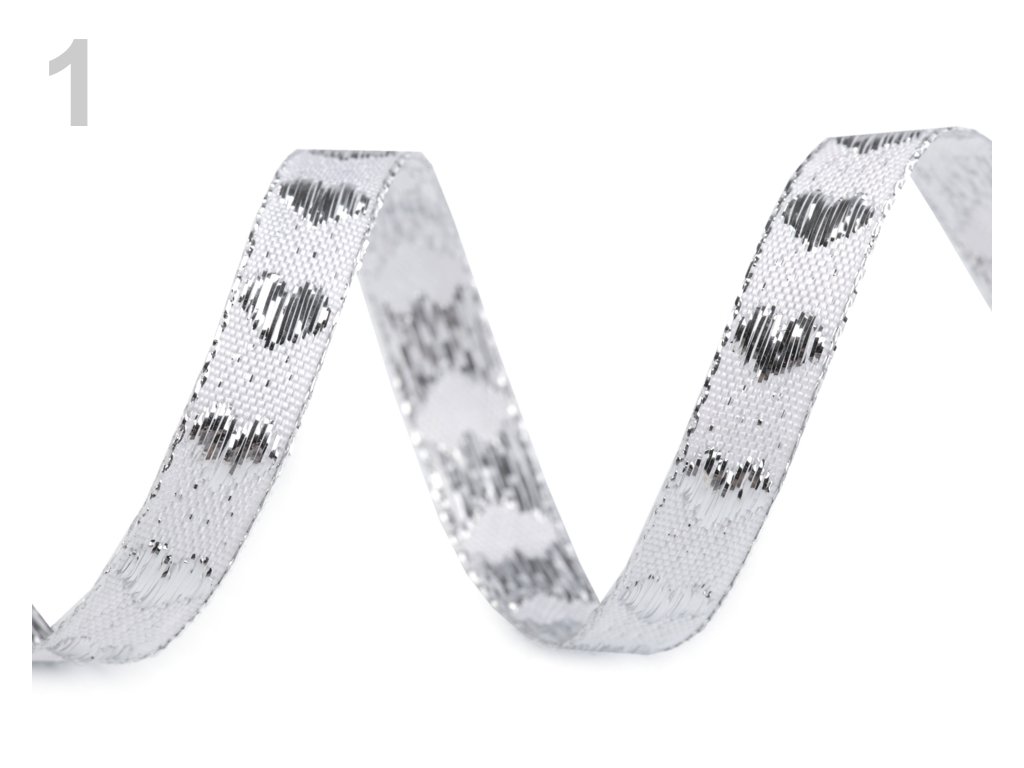 Stuha srdce s lurexem 10 mm - stříbrná (11,5m)