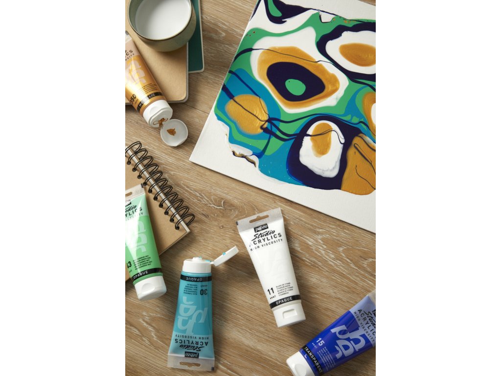 Nežloutnoucí pouring médium pro zvýšení průhlednosti barvy.