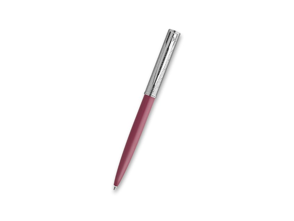 Kuličkové pero Waterman Allure DeLuxe Pink má růžově lakované mosazné tělo a víčko z broušené nerezové oceli zdobené rytinami vyvedenými pomocí laseru. V kombinaci s doplňky pokovenými palladiem.