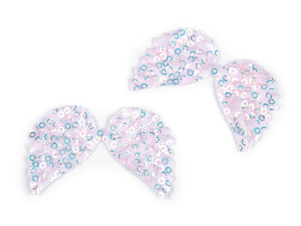 Textilní aplikace křídel má přední stranu ozdobenou flitry s AB efektem. Můžete ji přišít i přilepit.