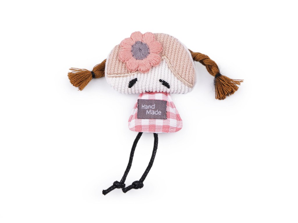 Textilní aplikace dívky roztomile ozdobí především oblečení dětí. Je plochá, má zajímavé detaily, ve středu těla má cedulku Hand Made. Vylepší mikinu, bundu, svetr i čepici. Hodí se i k našití nebo nalepení na batůžky a tašky. Použít ji můžete i ve scrapbookingu při vytváření různých přáníček, alb, deníků atd.