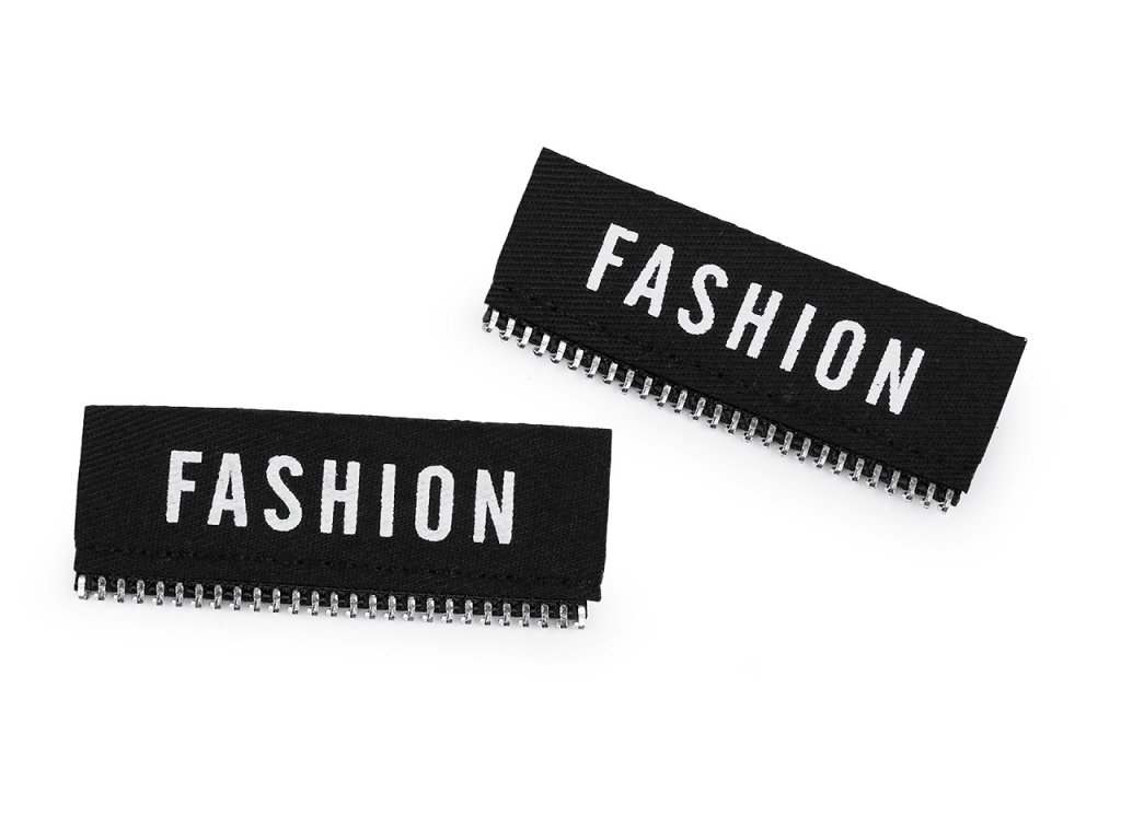 Fashion nášivka je jednostranná. Na boku je ozdobená zipem s kovovými zoubky. Můžete ji našít nebo nalepit jako štítek na vaše výrobky, například oděvy, tašky, pouzdra nebo dekorace. Skvěle se bude vyjímat na volnočasovém a sportovním oblečení, na svetrech, čepicích, nákrčnících apod.