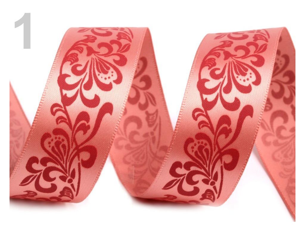 Atlasová stuha s ornamrntem šíře 25 mm - růžová