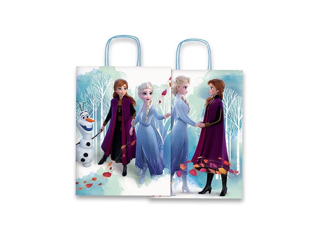 Dárková taška Frozen je papírová taška s motivem princezen Anny a Elsy z Ledového království. Z každé strany tašky je jiný obrázek. Nabízíme různé rozměry.