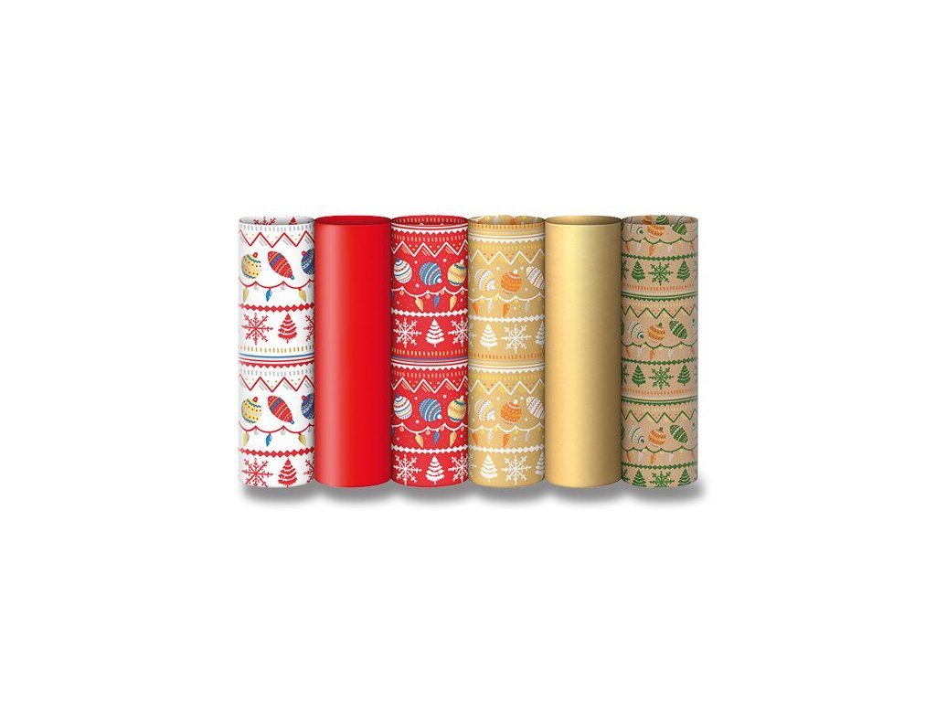 Dárkový balicí papír Sadoch Decori di Natale v atraktivních vánočních motivech a barvách. Baleno v rolích, šířka role 70 cm, délka role 5 m. Mix 6 motivů.