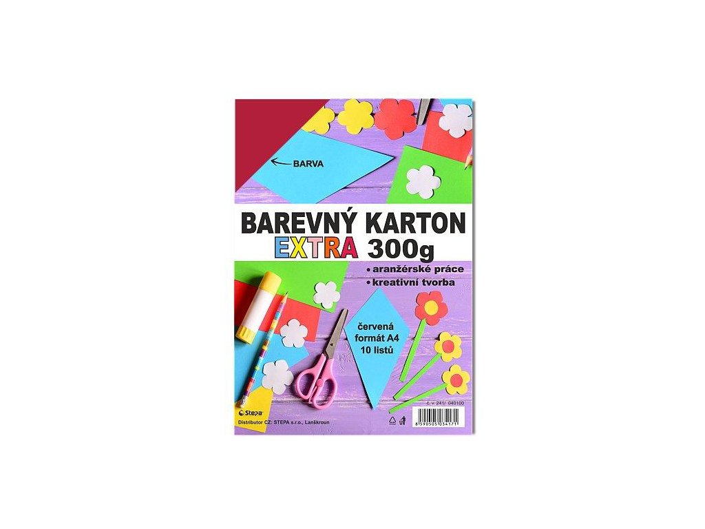 Barevný karton EXTRA - červený, A4, 300g (10 listů)