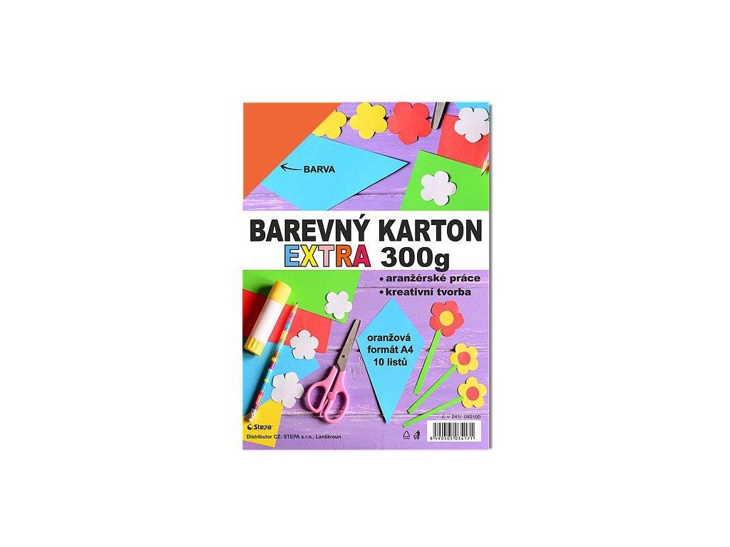 Barevný karton EXTRA - oranžový, A4, 300g (10 listů)