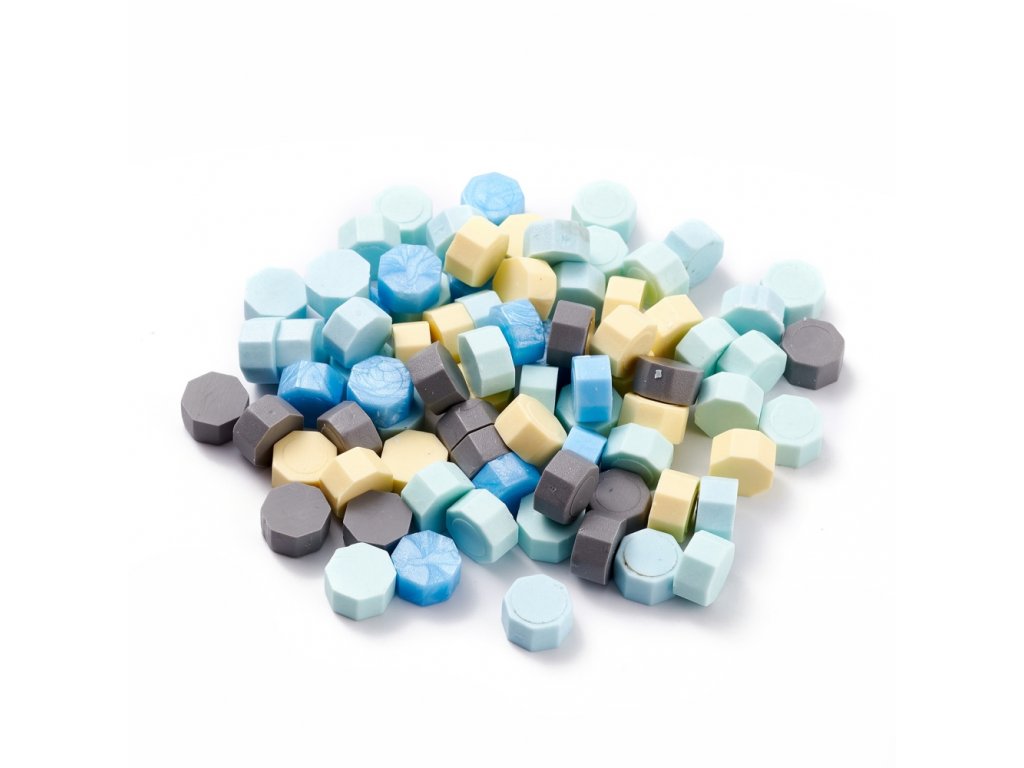 Barevné pečetní vosky granulované. Ideální pro zdobení obálek, balíků, pozvánek a vhodných pro hobby, řemeslné projekty, svatební a party pozvánky. Jsou nelepivé, nebudou se držet na razítku pečeti, ale vzor bude jasně zobrazen.