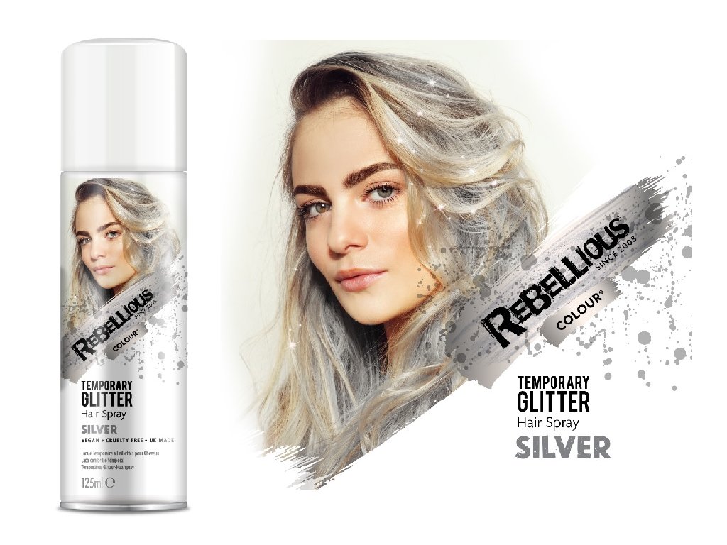 Dočasný třpytivý sprej na vlasy, 125 ml - Stříbrný "Silver Sparkle"