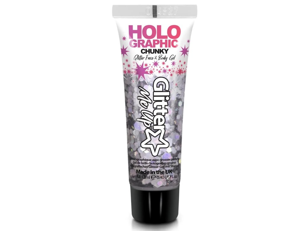 PaintGlow Glitrový gel holografický Chunky - Stříbrný "Intergalactic", 12 ml
