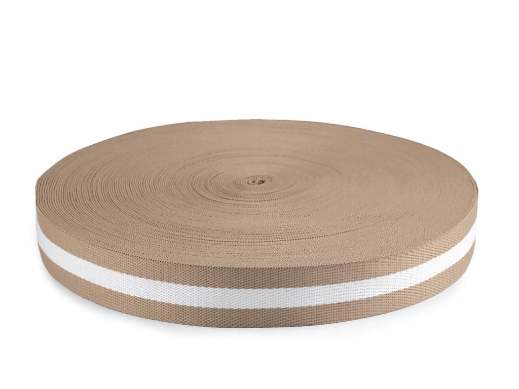 Pevný hladký popruh je vhodný na výrobu uch k batohům, taškám, na výplety nábytku, lehátek, saní, lemování textilních výrobků apod.
