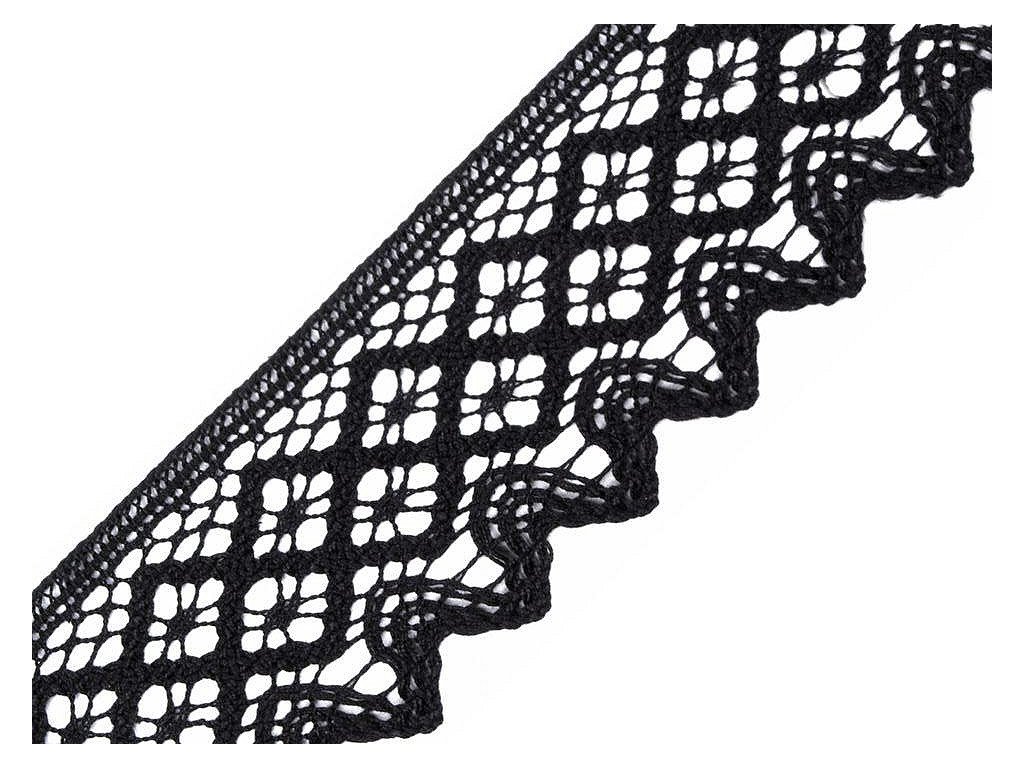 Bavlněná paličkovaná krajka je zdobená originálním motivem kosočtverců. Doporučujeme ji žehlit přes tkaninu.