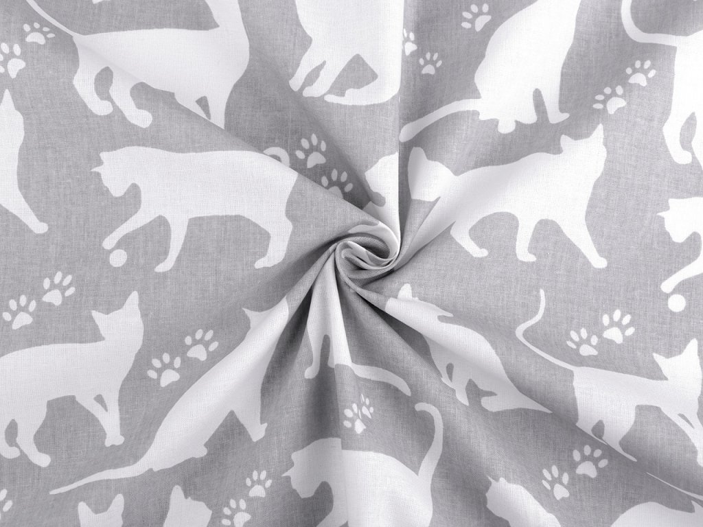 Bavlněná látka s designem koček potěší všechny milovníky těchto zvířátek. Je vhodná na šití polštářů, povlečení, závěsů, mantinelů do postýlek i hnízd pro děti. Využijete ji také na šití roušek, tašek, ubrusů apod.
