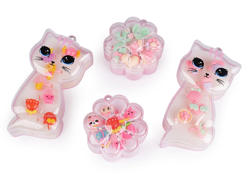 Sada 7 dětských prstýnků je zabalená v plastové dóze, která má průhledné plastové víčko a otvor na zavěšení. Prstýnky jsou ozdobené barevnými 3D ozdobami s různými motivy, u dětí jsou velice oblíbené. Navíc sadu 7 prstenů ocení, protože mohou mít na každý den v týdnu jiný prsten.