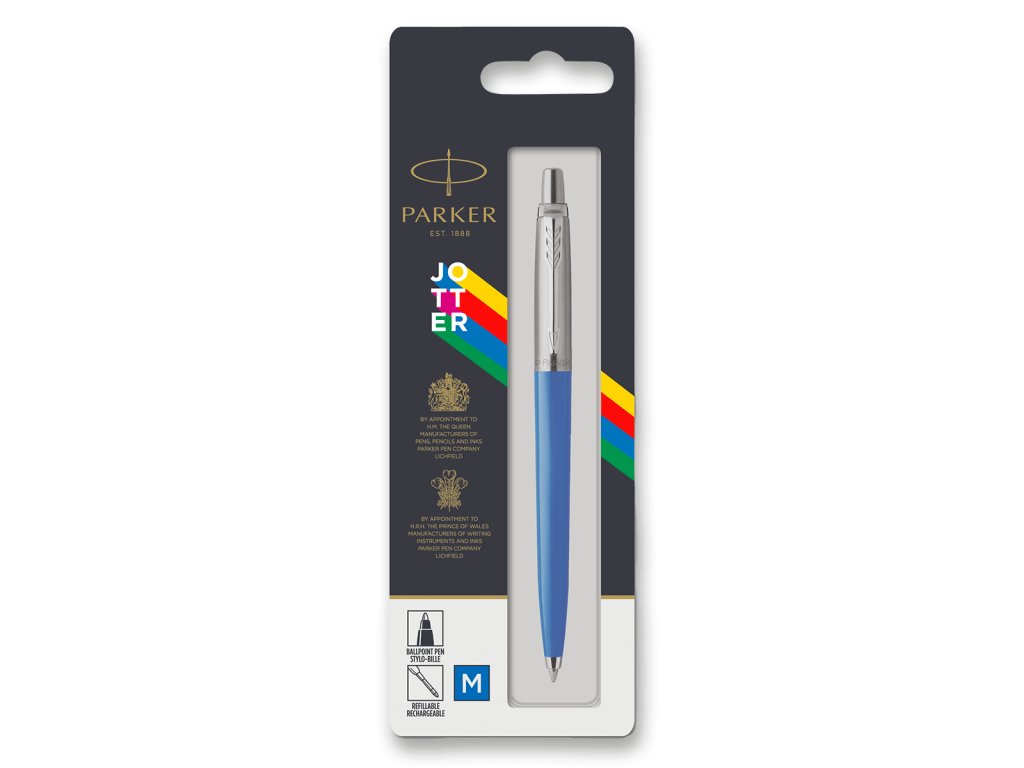 Kuličkové pero Parker Jotter Originals v originálních barevných provedeních. Barevný tvrzený plast s doplňky z nerezové oceli. Stiskací mechanismus. Šíře stopy M. Délka stopy 3 500 m.