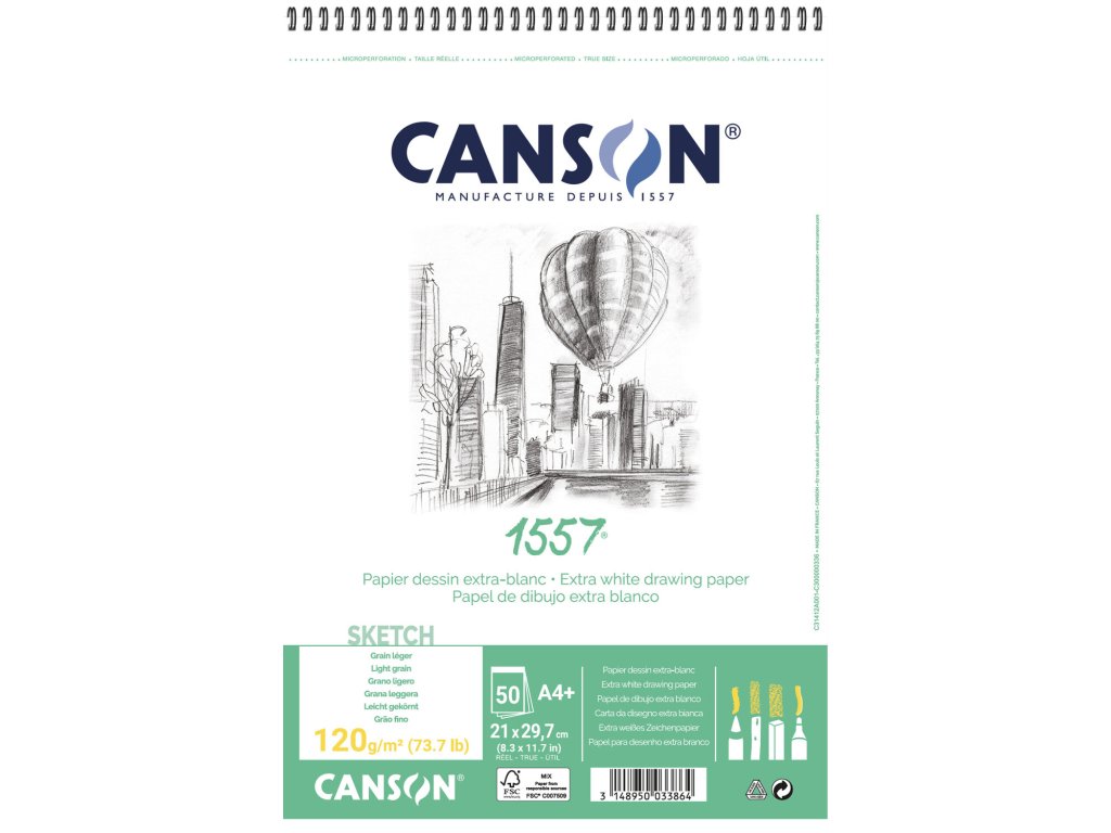 Kroužkový blok Canson Sketching o velkosti A4, A5, A3 a gramáži 120 g/m2, obsahuje 50 archů.