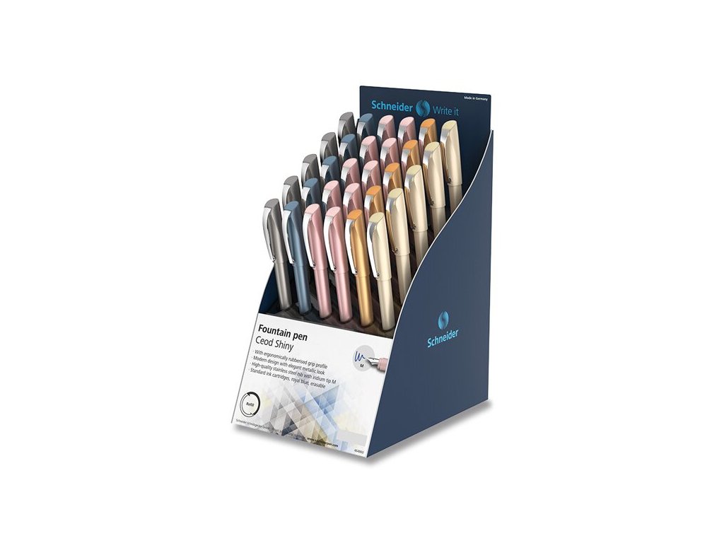 Stojánek 30 ks bombičkového pera Schneider Ceod Shiny. Ve stojánku je mix 5 barev.
