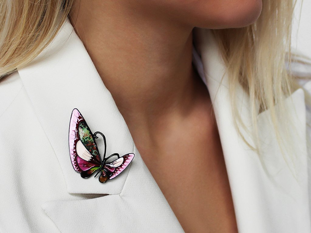 Brož motýla s barevným smaltem je elegantní a působivý doplněk, který dokáže oživit každý outfit. Je zpracována s důrazem na detail, což umocňuje její estetickou hodnotu. Z rubu má brožový špendlík. Můžete ji nosit nejen na oděvech, hodí se i k ozdobení klobouků, tašky či sepnutí šátku. Je skvělým dárkem pro každého, kdo ocení originální a hravé módní doplňky.