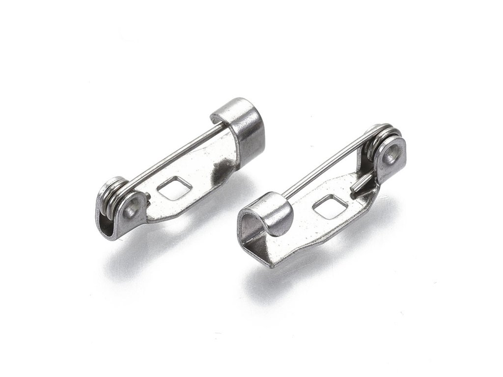Brožový můstek o rozměrech 14x4x4,5 mm s otvory o velikosti 1,5x1,5 mm pro uchycení brože. Pr. špendlíku 0,6 mm. Provedení z nerezové oceli 304 s úpravou proti černání.