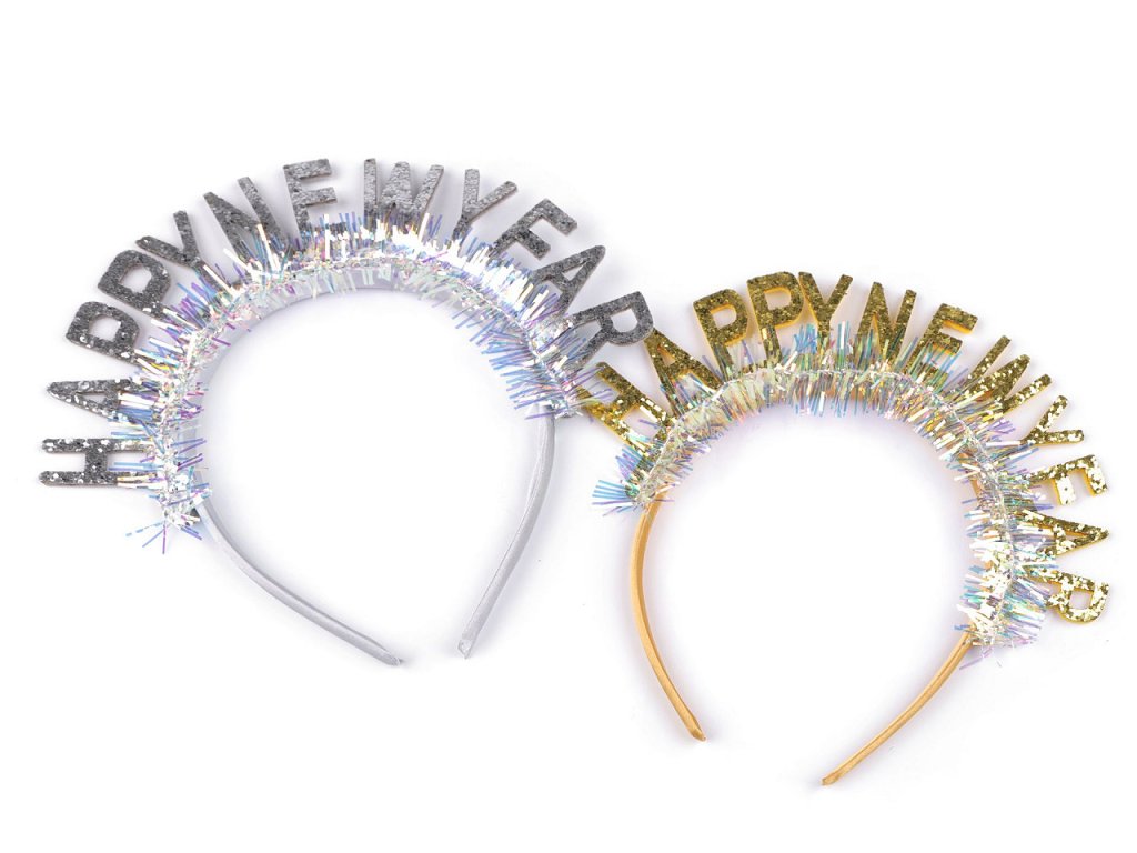 Čelenka s nápisem Happy New Year je vtipným a žádoucím doplňkem pro novoroční silvestrovskou párty. Díky ní budete vyčnívat z davu. Můžete ji využít i jako zajímavou dekoraci fotokoutku.