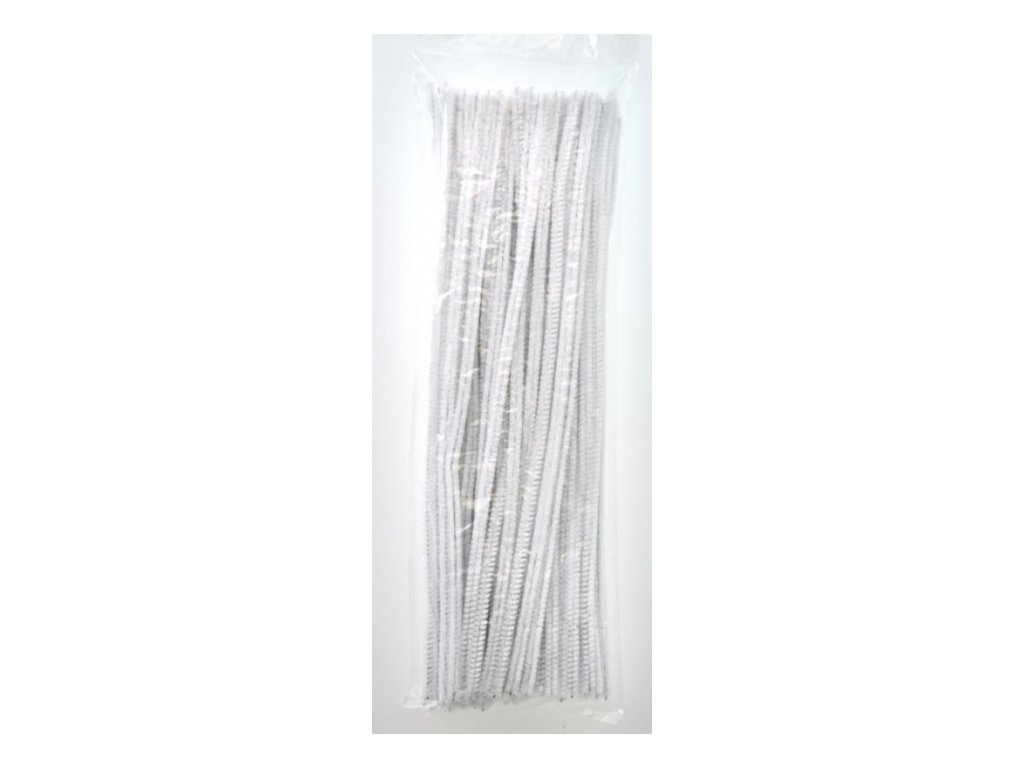 Balení obsahuje 100 ks bílých chlupatých drátů, 30 cm o Ø 6 mm.