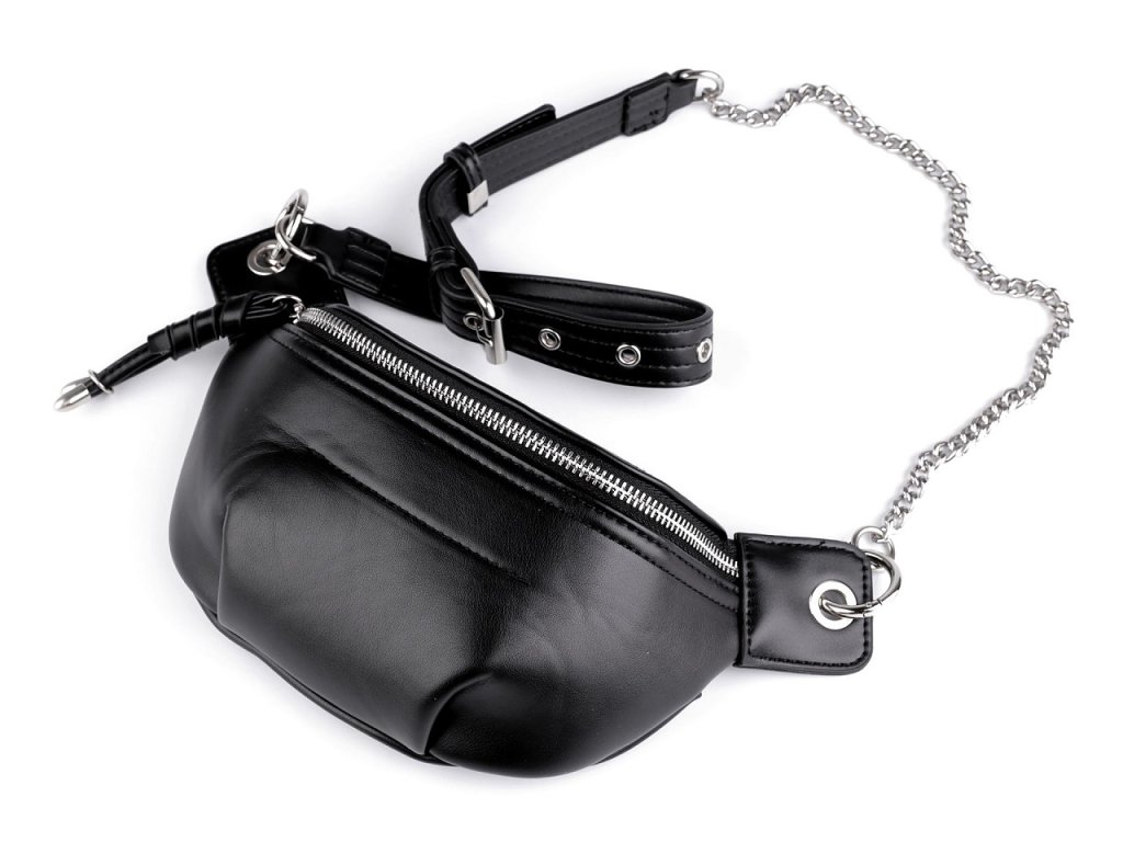 Elegantní crossbody ledvinka z eko kůže je praktický módní doplněk, pokud jdete na procházku a vystačíte si jen se základním vybavením jako jsou klíče, mobil, kapesníky, peníze apod. Můžete ji nosit křížem přes rameno. Zapíná se na zip ozdobený střapcem, uvnitř najdete malou zipovou kapsičku na drobnosti. Popruh je nastavitelný, kombinovaný s řetízkem, zapíná se na kovovou sponu. Je připevněný pomocí kulatých karabin.