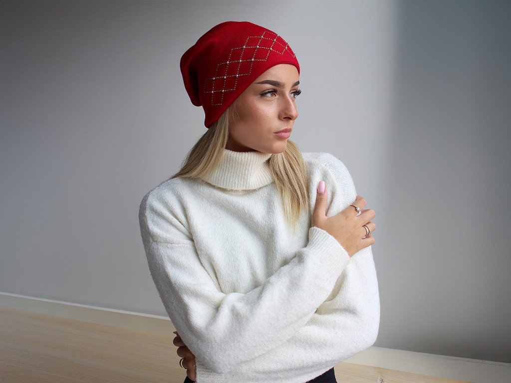 Dámská / dívčí zimní čepice s kamínky a perlami Lamblook