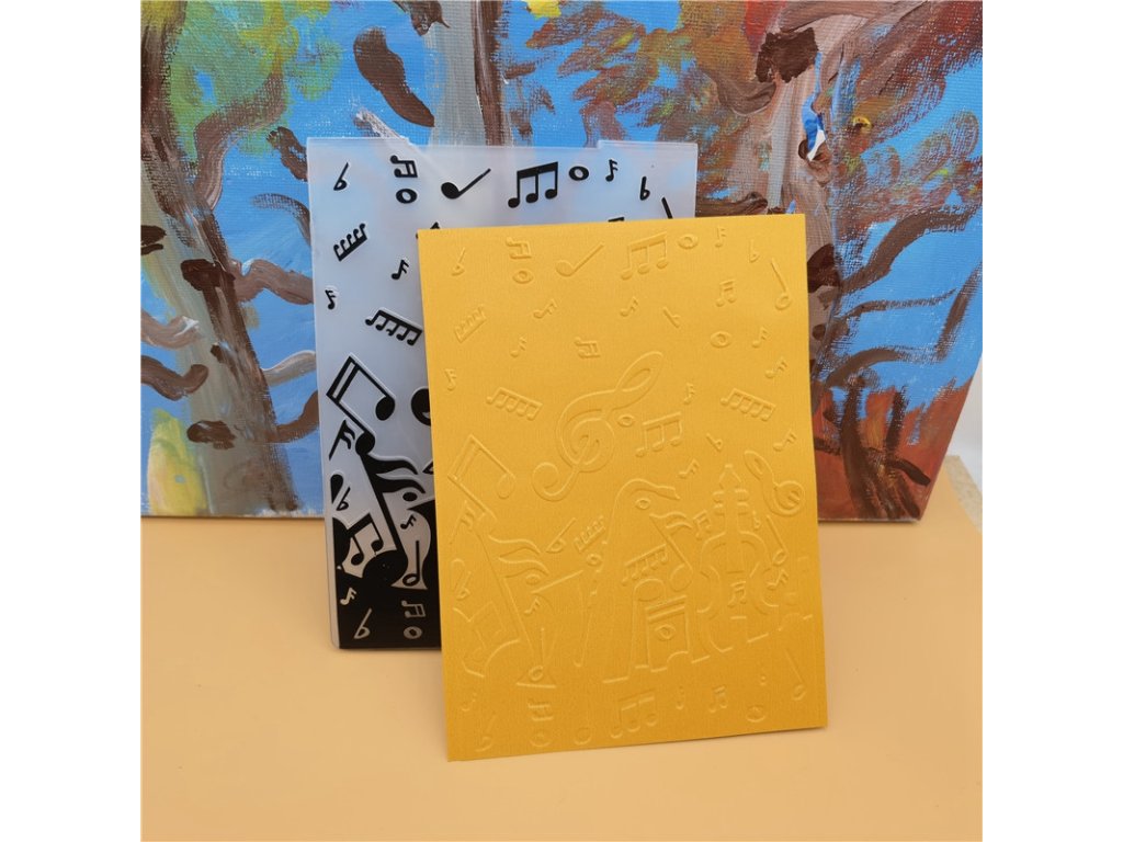 Embosovací kapsa s motivem not a houslových klíčů je ideální pro vytváření detailních reliéfů na papíře, fólii nebo polymerových hmotách. Embosování je jednoduchý způsob, jak ozdobit vaše kreativní projekty – stačí vložit papír do kapsy, projeďte strojem Big Shot a obdivujte krásný reliéf, který můžete dále upravovat.