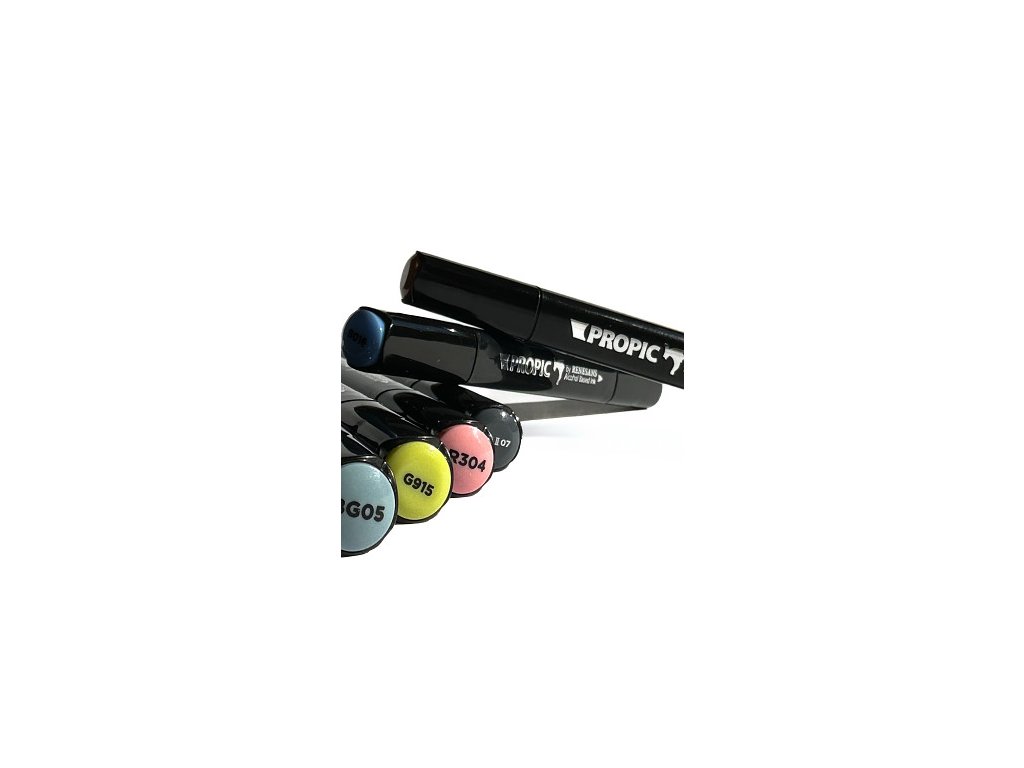 Umělecké voděodolné markery Propic se 2 hroty. Tenký je vhodný pro drobné detaily a linky, široký pak pro vykrývání ploch, stínování, apod. Díky inkoustu na bázi alkoholu jsou markery Propic vysoce odolné vůči rozmazání a to i na problémovém povrchu jako je třeba lepící páska. Inkoust je také hydrofóbní a nemusíte se tedy bát kontaktu s vodou. Jednotlivé tóny do sebe velice dobře přecházejí.