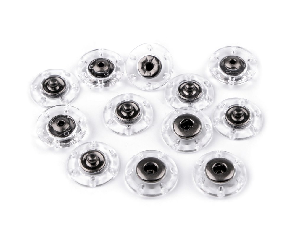 Designové plastové patentky jsou částečně transparentní. Podél okraje mají otvory, kterými je pohodlně našijete na látku.