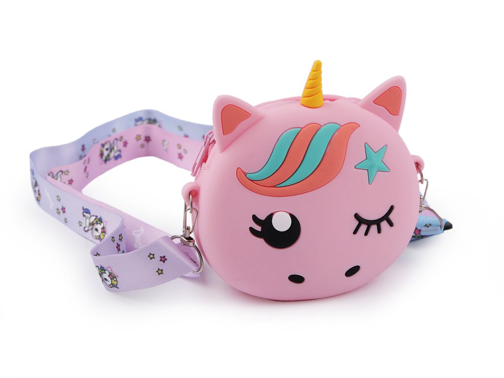 Dětskou silikonovou kabelku jednorožce si zamilují nejmenší slečny. Schovají do ní své poklady a nezbytnosti na procházky. Když z kabelky sundají popruh, mohou ji používat jako pouzdro nebo klíčenku. Kabelka se uzavírá se na zip. Její součástí je nastavitelný popruh s potiskem jednorožců na karabiny.