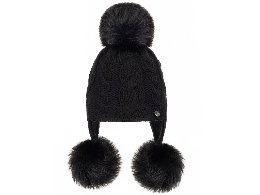 Pletená čepice s velkými bambulemi z umělé kožešiny je hravým módním kouskem. Je vyrobená z příjemného měkkého materiálu.