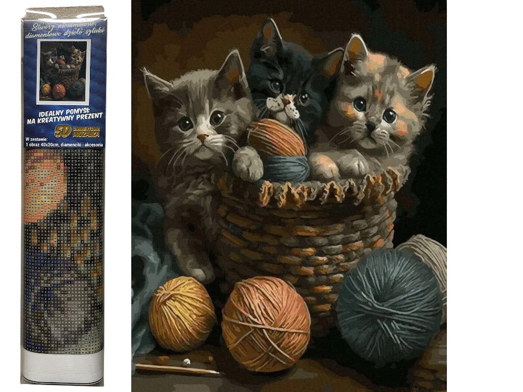 Diamantové malování - kočky v košíku 30 x 40 cm