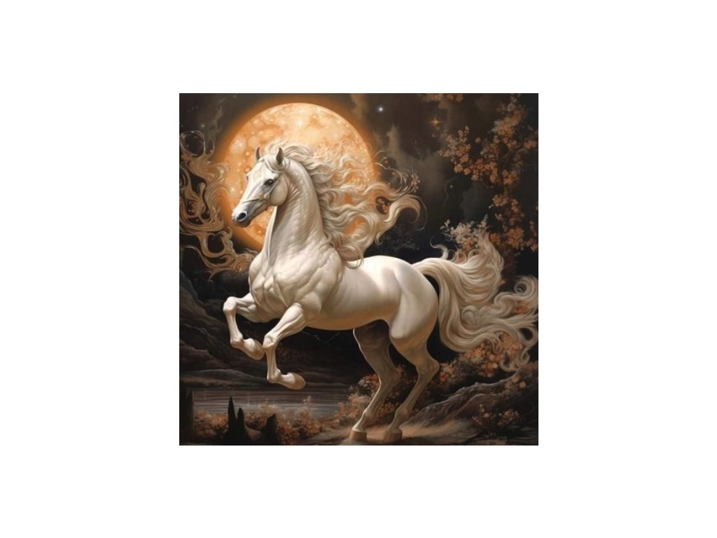 Diamantový obrázek bílý kůň za svitu měsíce 30 x 40 cm