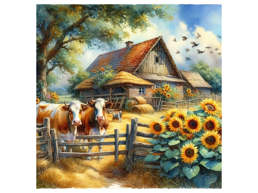 Diamantový obrázek farma a slunečnice 30 x 40 cm