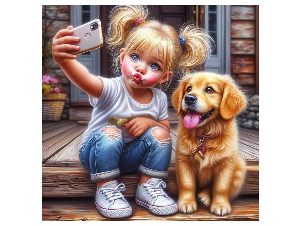 Diamantový obrázek holčička a pes - selfie 30 x 40 cm