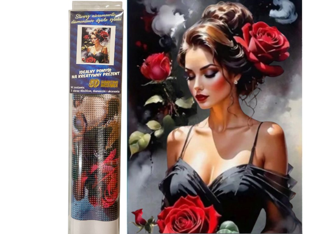 Diamantový obrázek portrét dámy s růžemi 30 x 40 cm