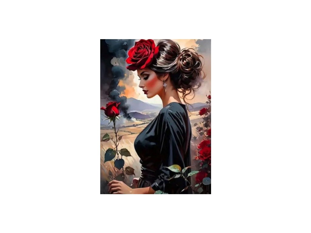 Diamantový obrázek profil dámy s růžemi 30 x 40 cm