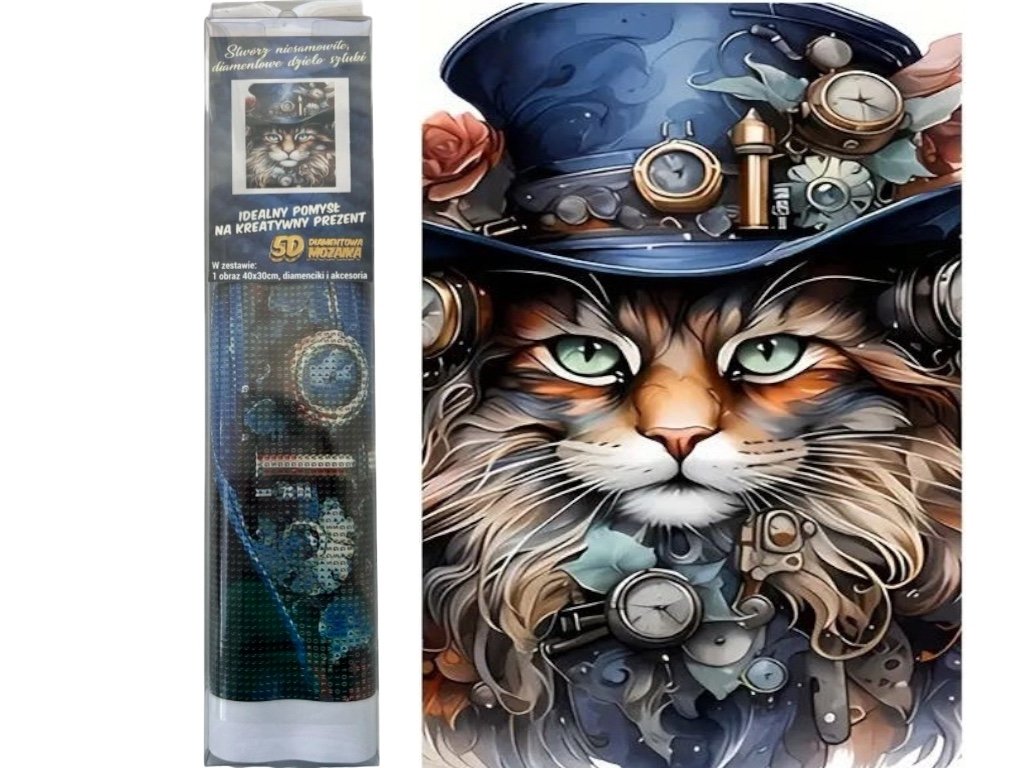 Diamantový obrázek - Steampunková kočka 30 x 40 cm