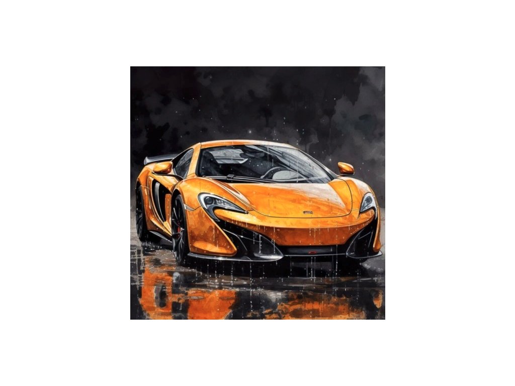 Diamantový obrázek žluté sportovní auto v dešti 30 x 40 cm