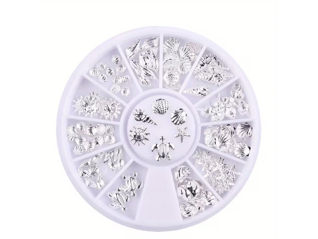 Sada nabízí širokou škálu drobných kovových ozdob pro vaše kreativní projekty. Kombinace různých tvarů a prvků umožňuje vytvářet jedinečné a působivé designy v široké škále aplikací, od šperků až po karnevalové dekorace.