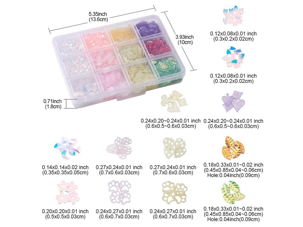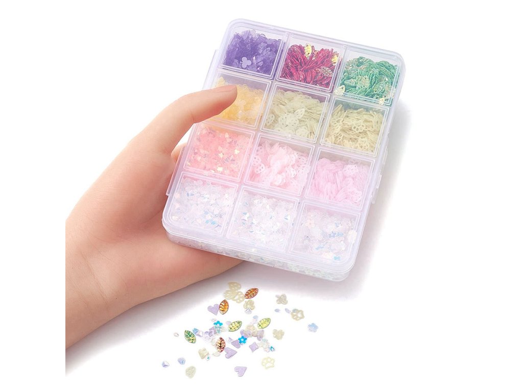 Sada plastových flitrů 12 tvarů (62g)
