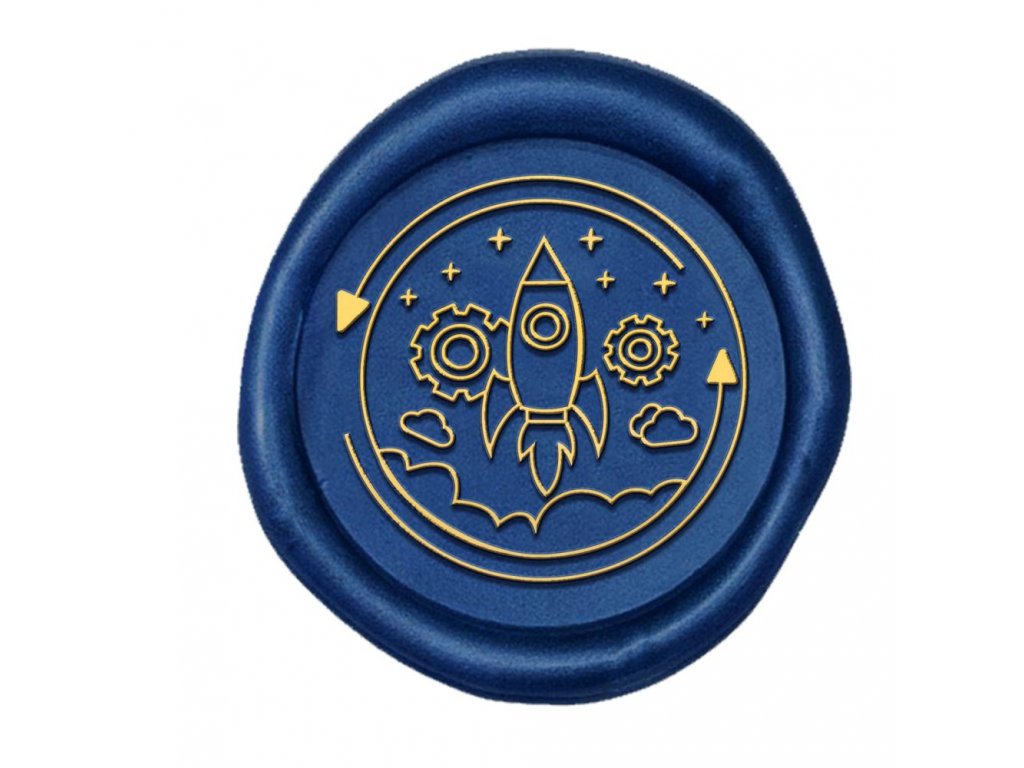 Kovové pečetidlo s dřevěnou ručkou pro práci s pečetními vosky.