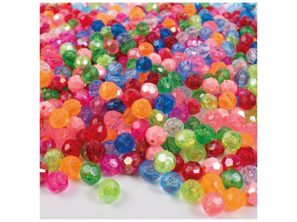 Balení obsahuje cca 250 ks korálků o Ø 10 mm s Ø průvleku 1,7 mm v barvách - růžová, červená, tm. zelená, sv. zelená, tm. modrá, antracitová, sv. modrá, oranžová, průhledná.